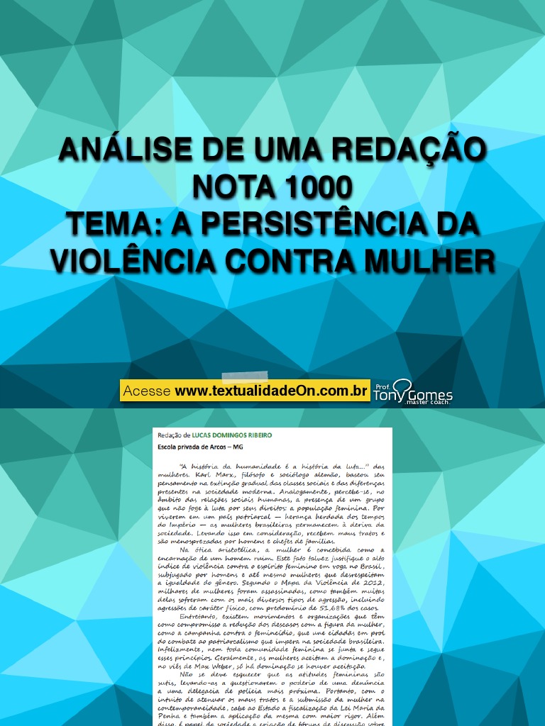 Lei Maria Da Penha Redação Nota 1000. Tema A Persistência Da Violência Contra A Mulher Na