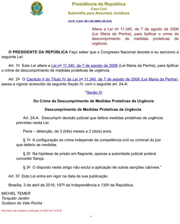 Abaixo estão as fotos do medida protetiva na lei maria da penha que o administrador do blog Lei de Partilha 2019 coletou.