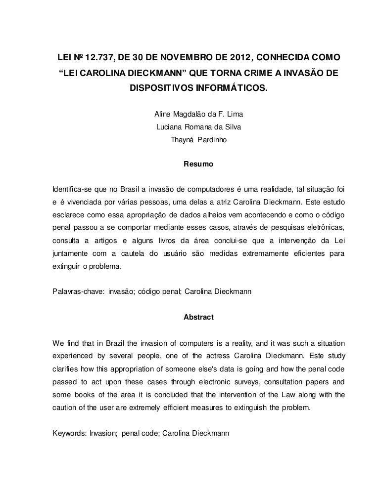 Abaixo estão as fotos do o que é a lei carolina dieckmann que o administrador do blog Lei de Partilha 2019 coletou.