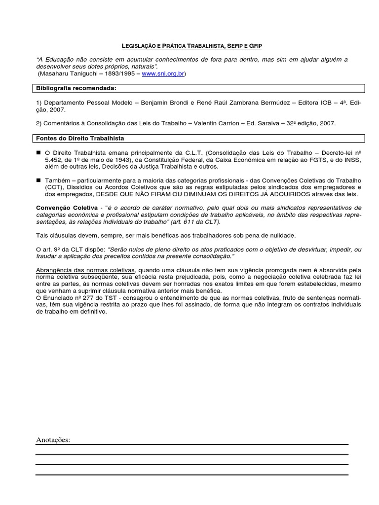 Informações importantes relacionados Valentin Carrion Comentários à Consolidação Das Leis Do Trabalho.
