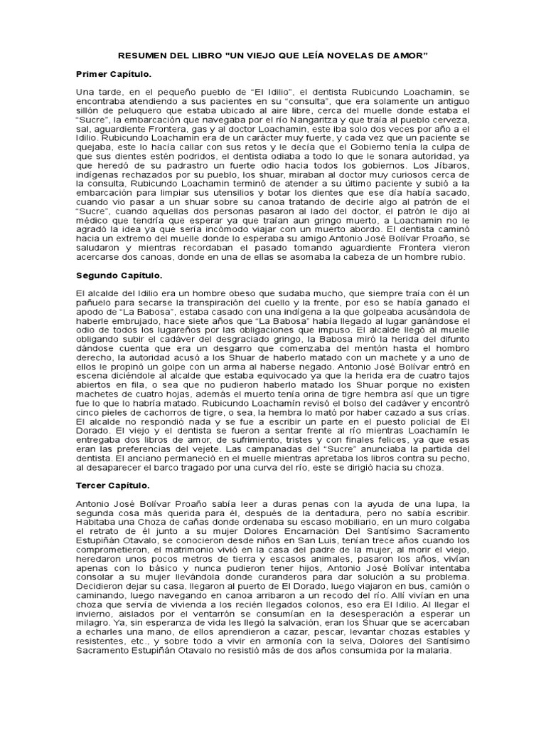 Última atualização Resumen Del Libro Un Viejo Que Leia Novelas De Amor.