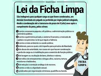 Abaixo estão as fotos do o que é a lei ficha limpa que o administrador do blog Lei de Partilha 2019 coletou.