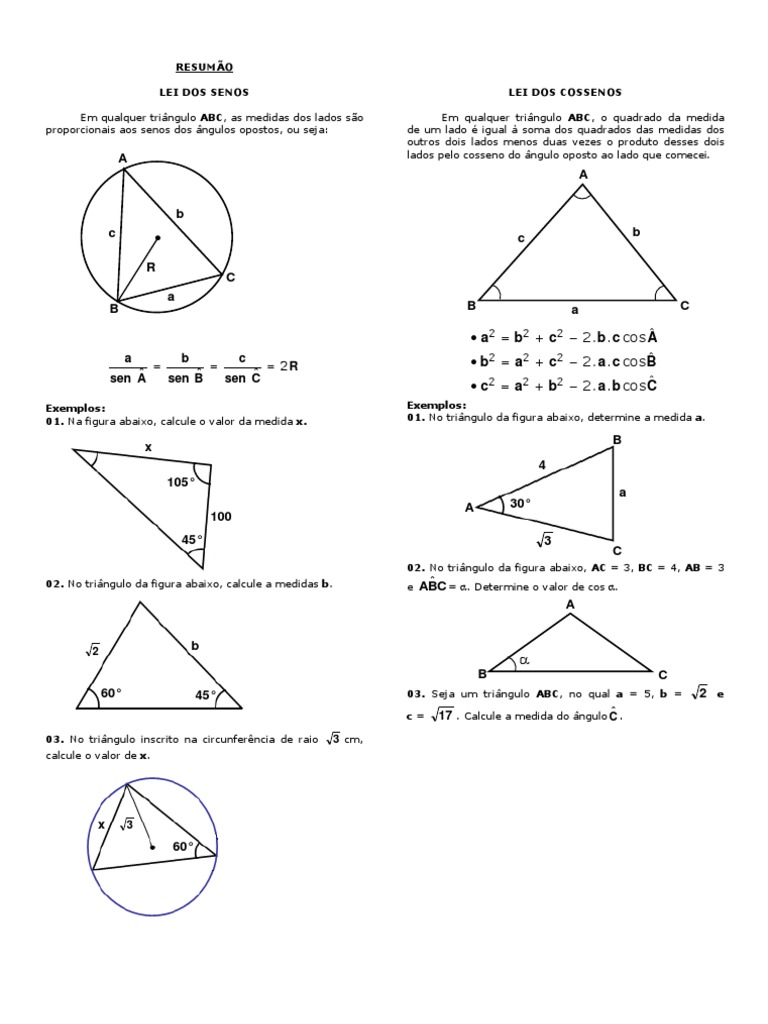 Lista De Exercicios Lei Dos Senos E Cossenos Pdf